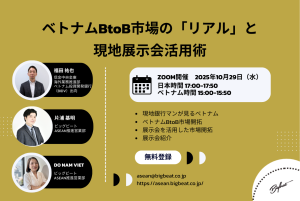 ベトナム市場に参入を検討する企業は、現地の特性やビジネス環境をしっかりと理解し、長期的視点での戦略立案が重要です。株式会社ビッグビートは、海外展示会出展のサポートをしています。特に、タイやベトナムに現地法人を有しており、出展企画の立案から展示ブースの設営、コンパニオンをはじめとする運営スタッフの手配や管理に至るまで、日本の高い品質基準を維持したまま、現地からの迅速なサポートを提供することが可能です。ベトナム市場への効果的な参入をお考えの際は、ぜひビッグビートのサポートをご活用ください。